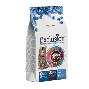 Exclusion Mediterraneo Monoprotein Formula – Noble Grain on täisväärtuslik ja tasakaalustatud toit, mis koosneb ühest dehüdreeritud loomse valgu allikast. Spetsiaalne koostis aitab hoida kuseteed tervetena ning toit on säilitatud looduslike antioksüdantidega. Rikastatud uuendusliku Vahemere traditsioonidest pärit supertoitude retseptiga: granaatõun, põldmarjad, vaarikad ja mustikad. Sisaldab psülliumi, mis aitab ennetada karvapallide teket. Ei sisalda kanarasva, nisu, soja ega maisi. Koostises on ainult üks kõrge kvaliteediga üllas teravili - riis.
