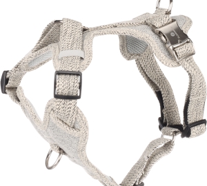 Varustatud kroomitud viimistlusega metallist klõpskinnituste ja rõngastega, mis asuvad nii rinnal kui ka seljal, pakkudes erinevaid rihma kinnitamise võimalusi.