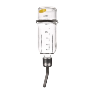 Tagab puhta vee – veenduge, et teie lemmikloomal oleks alati värske vesi saadaval. Hügieeniline. Metallist joogitoru kuulklapiga hoiab ära tilkumise. Maisi kujuline veetaseme indikaator näitab, millal pudelit tuleb täita. Ohutu kinnitus vedru ja traadist hoidjaga. Valmistatud taaskasutatud klaasist.