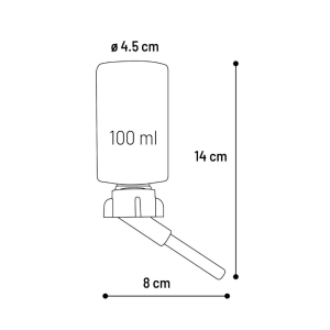 Materjal: plastmass ja metall. Korgil on keeratav kinniti. Roostevabast terasest otsik kahe kuulikesega hoiab ära vee tilkumise. Varustatud traadist riputuskonksuga ja veetaseme indikaatoriga. Mõõtmed: 8x4,5x14cm.