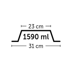 Materjal: roostevaba teras. Värvus: hõbedane/must. Kuju: ümmargune. Mõõtmed: 23x5,7x31cm. Maht: 1,59L. Veekindel ja libisemiskindel, sobib pesemiseks nõudepesumasinas.
