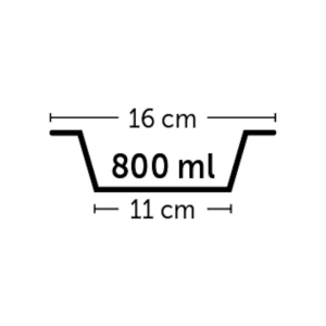 Materjal: roostevaba teras. Mõõtmed:16x6x11cm. Maht: 800ml. Võib pesta nõudepesumasinas. Veekindel.