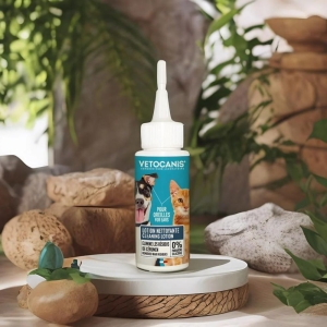 Vetocanis puhastuslahus koerte ja kasside kõrvadele 60ml VETOCANIS puhastulahus kõrvadele on valmistatud looduslikest taimeekstraktidest, et puhastada õrnalt teie koera või kassi kõrvu ja vältida nakkusohtu. puhastuslahus võimaldab teil puhastada koera või kassi kuulmekäiku ning rasuekstrakte ilma ärrituse riskita. Kõrvaldab kõrvavaha jäägid Taimsete ekstraktidega Valmistatud Prantsusmaal Sobib koertele ja kassidele Pehmendavate ja rahustavate omadustega taimeekstraktidega. Kasutamine: Viige lahus kanüüli abil kuulmekäiku. Sulgege kõrv ja masseerige mõni sekund kahe sõrmega pea lähedalt, et kuulmekäigu küljes olev mustus lahti tuleks. Eemaldage mustus vatitikuga. Kõrvapuhastusvedelikku võib kasutada iga päev. See ei asenda ühtegi teie veterinaararsti määratud ravi.