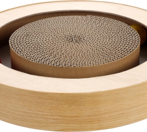 Vastupidavast papist mänguasi kassidele koos kraapimislauaga.