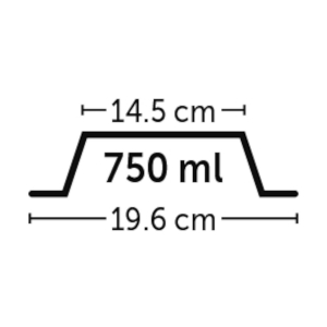 Materjal: 98% taaskasutatud plastmass. Värvus: helesinine. Kuju: ümmargune. Mõõdud: 14,5x19,6x6cm. Mahutavus: 750ml. Võib pesta nõudepesumasinas. Veekindel. Sobib kasutamiseks nii õues kui ka siseruumides.
