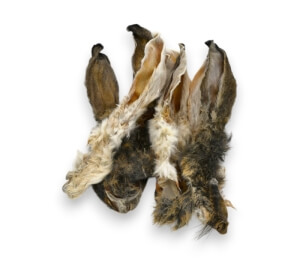 Koerustükk kuivatatud küüliku kõrvad karvadega - naturaalne söödamaterjal koertele.