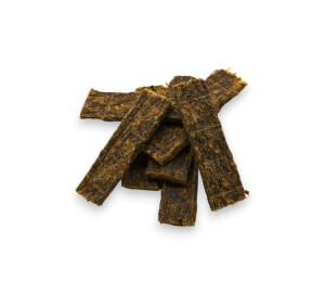 Koerustükk kuivatatud pardi liharibad - naturaalne söödamaterjal koertele.